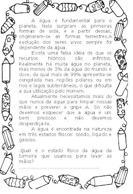 Adorei esta atividades que engloba:texto, importância da água e verbos.