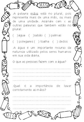 Em seguida, atividades de gramática, onde trata-se novamente de classificação quanto ao número do substantivo,e uma interdisciplinaridade, ampliando o trabalho sobre a água: