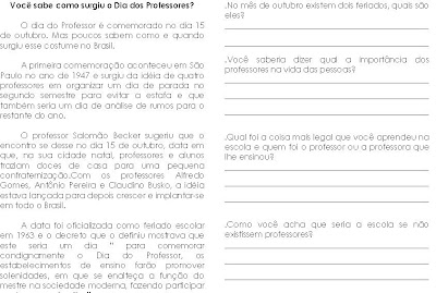 Abaixo, texto com atividades, e outros materiais que você pode utilizar em sala de aula.