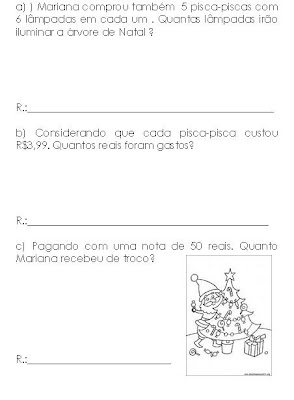 Abaixo algumas situações problemas envolvendo conteúdos matemáticos das turmas de quarto e quinto ano, com o tema Natal.