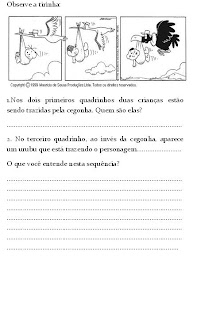 abaixo, atividades com tirinhas da Turma da Mônica para análise e interpretação dos alunos.