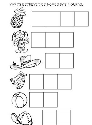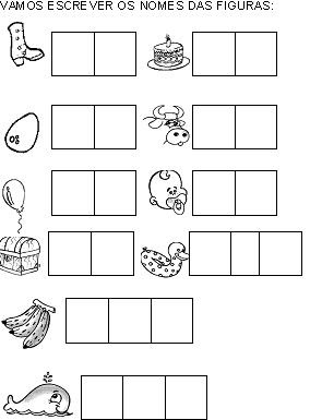 Os quadrinhos são propositais para que a criança escreva cada sílaba separada e fixe o conceito da escrita silábica.