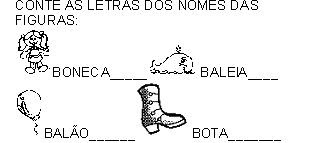 Alfabetização unida à Matemática na contagem de letras dos nomes das figuras.