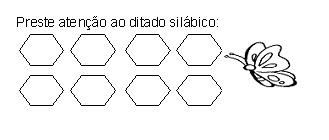 Pequena atividade para caderno, onde a criança vai escrever em cada espaço a sílaba que a professora ditar.